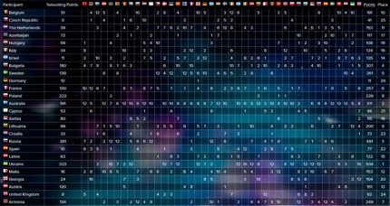 12 баллов- Босния и Герцеговина, Дания, Македония, Грузия, Израиль, Латвия, Молдова, Польша, Сан-Марино, Сербия, Словения