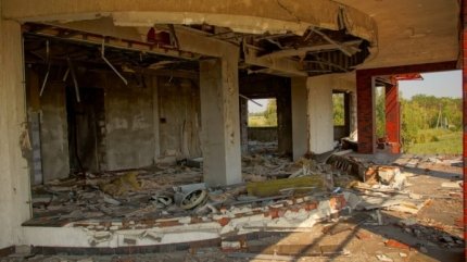 "17 июня 2014 года неподалеку от него произошел знаменитый бой "Айдара" с боевиками ЛНР, в ходе которого попала в плен Надежда Савченко, а добровольцы понесли значительные потери. Тогда украинские солдаты еще видели клуб таким", - продолжил журналист.