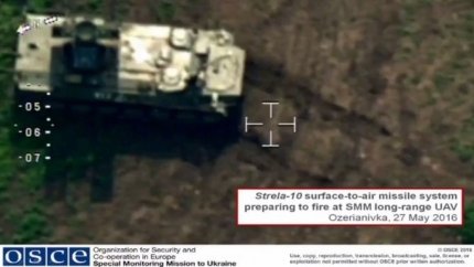 "Последние мгновения "жизни" БПЛА СММ ОБСЕ, затем его сбили российские террористы с помощью ЗРК "Стрела-10". #ЗахароваТыГде?", - говорится в сообщении.