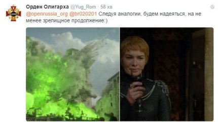 Такая новость рассмешила пользователей соцсетей, которые вспомнили сериал "Игра Престолов" и его персонажа, - последовательницу Его Воробейшества септу Юнеллу, которая неоднократно навещала заточенную королеву Серсею и требовала от нее покаяния в обмен на глоток воды.
