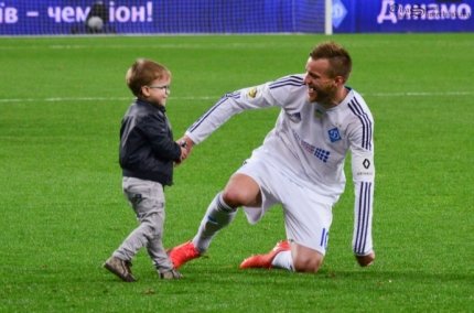 Лидер киевского "Динамо" Андрей Ярмоленко праздновал чемпионство с сыном.