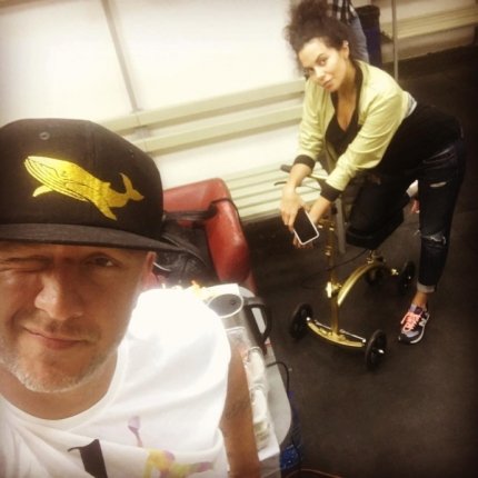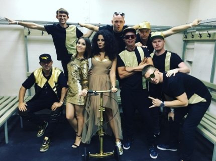 «Все к чему мы прикасаемся - превращается в Золото))) даже Настин специальный самокат для поломанной ноги )) я вообще горжусь этой девочкой, вчера - операция, сегодня - концерт, молодец», - подписал Потап фото.