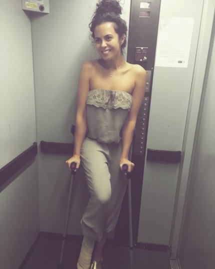 Украинская певица, участница популярного дуэта "Потап и Настя"Настя Каменских после неудачного прыжка с парашютом передвигается на костылях.