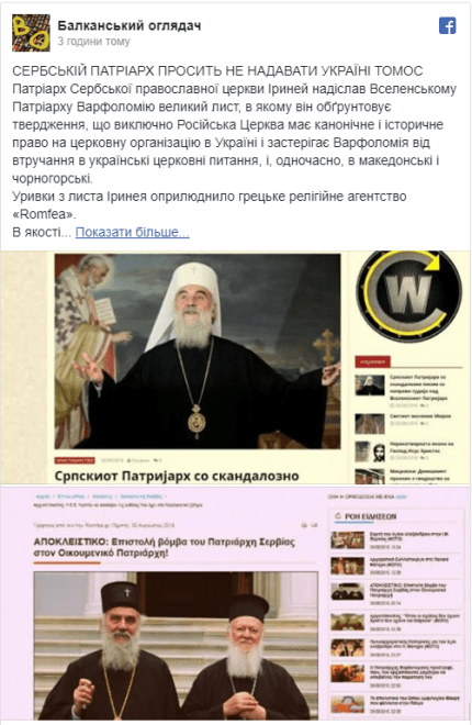 "Предоставление автокефалии церкви в Украине сербский патриарх описывает как" очень рискованный, даже катастрофический "акт для единства Святого Православия, а УПЦ КП называет розкольниками.Такое решение, по мнению автора письма, будет означать еще и небратскою позицию по отношению к Русской Церкви . Ириней уравнивает "лидеров раскола в Черногории и Украины" и считает, что, как и в Македонии, "ситуация в Черногории связана с Украиной", - сказано в сообщении.