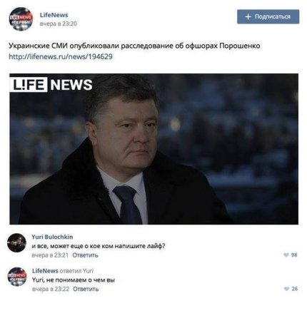 Также сообщалось, что пользователи соцсети сравнили отношение россиян и украинцев к офшорным скандалам вокруг президента Украины Петра Порошенко и президента России Владимира Путина.