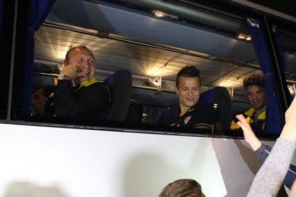 Дождавшись появление украинца, болельщики кричали "Коноплянка" и не пускали его в автобус. Женя раздал несколько автографов, сфотографировался с фанатами, после чего таки попал в автобус.