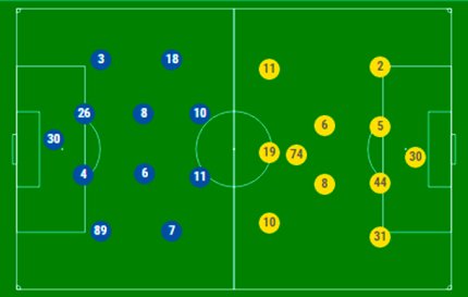 Запасные: 26. Шевченко, 14. Кобин, 18. Ордец, 9. Дентиньо