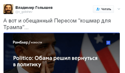В свою очередь, известный российский публицист Владимир Голышев предположил, что такое решение Обамы будет кошмаром для действующего главы Белого дома Дональда Трампа.