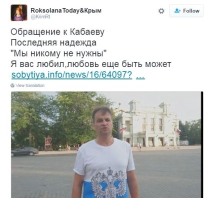 "Как всегда, надежда только на вас! Защитите жителей Крыма! Кроме вас в Крыму мы никому не нужны! Существует много эмоций, оставляющих в душе разные чувства. Но есть разочарование, от которого в душе не остается ничего. Не дайте ему поселиться в наших душах", – сказал житель Крыма.