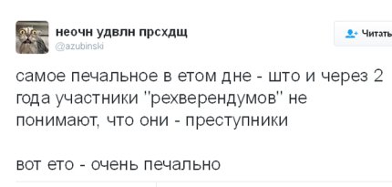 — «Как стало известно, на вторую годовщину оккупации Крыма, пролетая из Сирии в Воронеж, российские бомбардировщики сбросят крымчанам камни с неба — как просили», — написал в своем Facebook известный шоумен Дмитрий Чекалкин.