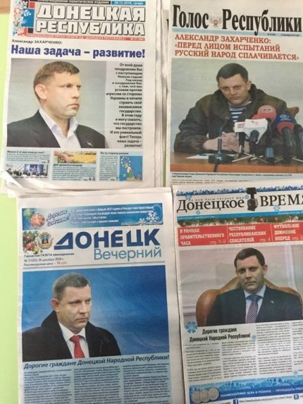 "Так теперь выглядят доступные газеты в Донецке. На передовой маразматического соревнования с фото "главы", - подписал он снимок.