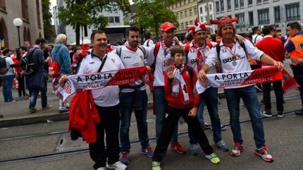 17:42. у болельщиков своя подготовка к финалу. "Санкт-Якоб Парк" примет 38 тысяч болельщиков и нет сомнений, что трибуны будут заполнены (фото - uefa.com)