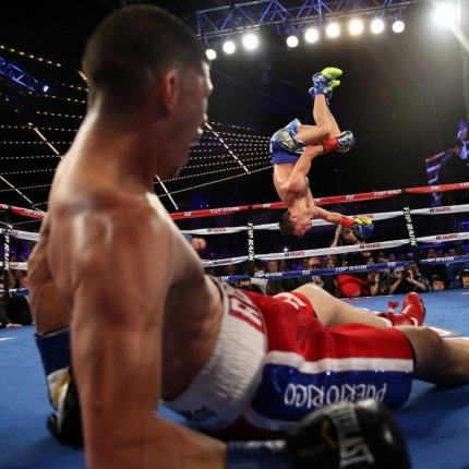 В третьем и четвертом раундах Ломаченко мощнейшими сериями сотряс Романа, но тот устоял на ногах. А на исходе первой минуты 5-го раунда Ломаченко отправил Мартинеса в глубокий нокаут.