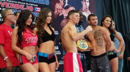 В Нью-Йорке состоялась церемония взвешивания, приуроченная бою за титул чемпиона мира WBO во втором полулегком весе между обладателем пояса пуэрториканцем Романом Мартинесом и претендентом на титул украинцем Василием Ломаченко.