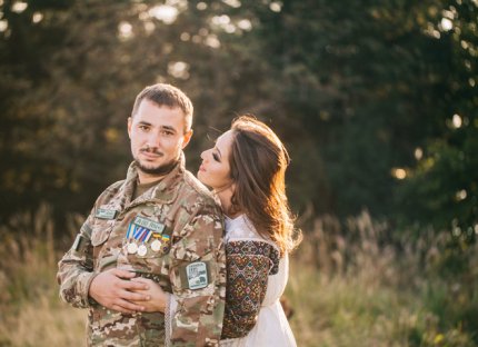 Украинская певица Наталка Карпа и герой АТО Евгений Терехов "Титановый Джексон", которые недавно официально стали мужем и женой, перед свадьбой снялись в трогательной фотосессии.