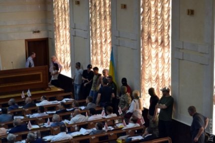 Бойцы заблокировали трибуну и потребовали, чтобы депутаты поддержали их требование о предоставлении добровольцам статус участников АТО. Их поддержал глава Одесской ОГА Михеил Саакашвили.