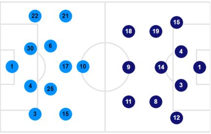 Запасные: 13. Кабальеро - 5. Сабалета, 11. Коларов, 18. Делф, 20. Мангаля