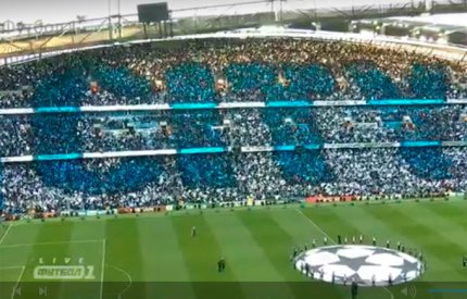 21:43. звучит гимн Лиги чемпионов. Трибуны "Этихада" традиционно освистывают гимн