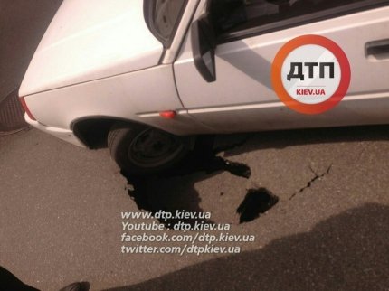 В центре Киева 30 марта на улице Тургеневской произошло дорожно-транспортное происшествие, в котором машина провалилась под асфальт,
