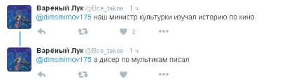 Слова министра культуры РФ, а также журналиста кремлевского пула Дмитрия Смирнова, который их перепостил, вызвали широкий резонанс пользователей социальных сетей.