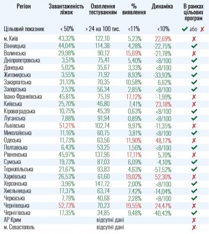 Черновицкая область (высокая загруженность коек и превышены динамика и процент выявления больных).