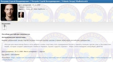 Скандальный украинский танцор Сергей Полунин попал в "чистилище" сайта "Миротворец". Его "наказали" за пособничество российским оккупантам и антиукраинскую пропаганду после того, как Полунин публично признался в любви Путину и рассказал о своем российском гражданстве, сообщает ONLINE.UА.