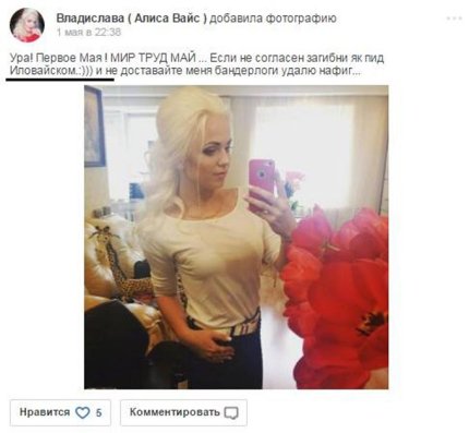 «Надеюсь, все помнят, недавно проходил конкурс Мисс Славянск 2016 при поддержке, конечно же, народного депутата Солода («Оппозиционный блок» - ред.) и под патронатом, конечно же, нашего мэра (Вадима Ляха, - ред.)? Его выиграла выпускница школы №9 Владислава Таткало. А вот какие посты строчит Владислава у себя ВКонтакте. К сожалению, пост она уже удалила, но мы будем пристально наблюдать за ней», - написал Торец.