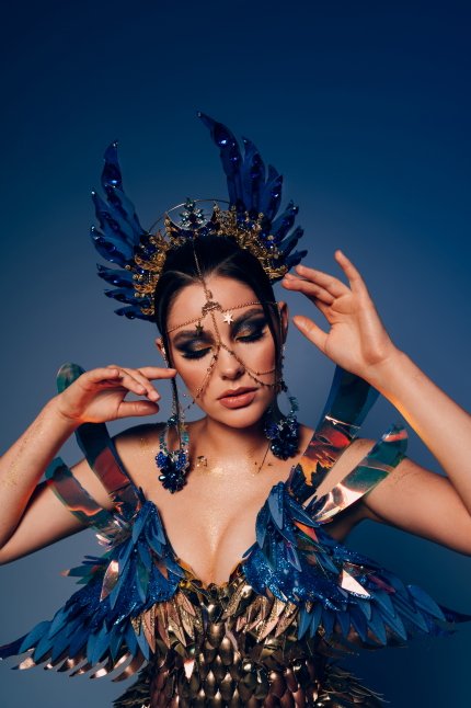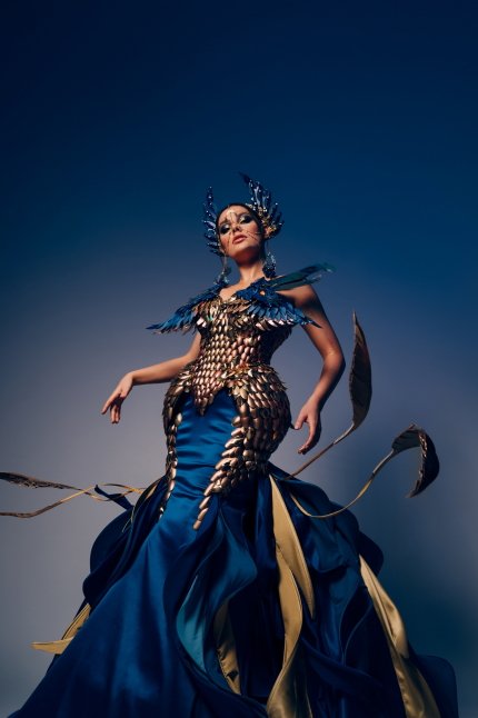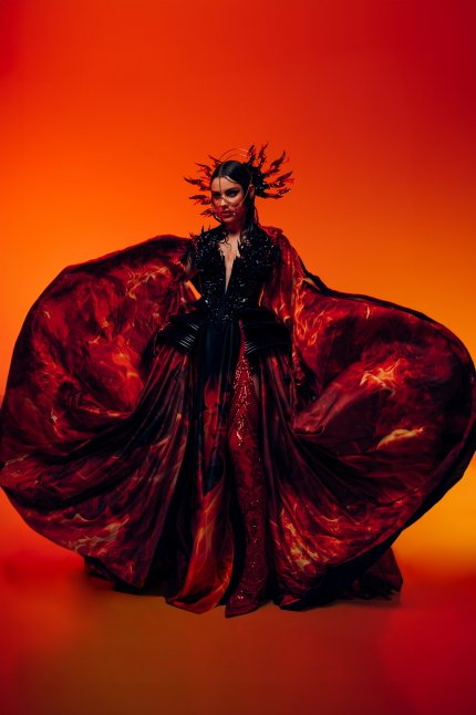 Феникс — национальный костюм Ангелины Усановой для конкурса Miss Eco International-2024. Феникс — мифическое создание, символизирующее Украину и украинцев — страну, которая ежедневно под обстрелами, но продолжает жить, восстанавливать разрушенные города, любить, творить, рожать детей. Феникс — символ бессмертия.