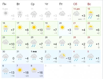 На протяжении всей следующей рабочей недели, с 16 по 20 декабря, обильных осадков и похолодания не предвидется. Во всех регионах будет сухо и солнечно. В дневное время будет преобладать плюовая температура +9...+12°С. Ночью столбики термометров будут опускаться ближе к 0°С.