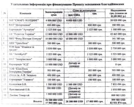 "Публикую первый документ о политической коррупции президента Виктора Ющенко. Предоставляю для ознакомления общественности и Национальному антикоррупционному бюро Украины обобщенную информацию о финансировании "Больницы будущего" крупным бизнесом, тогдашними оппозиционными политиками и различными фондами. Общая сумма полученных денег – 44,5 миллиона долларов и более 17 миллионов гривень (в период правления Ющенко курс гривны к доллару был сначала 5, а потом 8 грн)", - отметил глава Закарпатской ОГА.