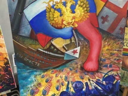 Молодые художники, дизайнеры и режиссеры используют пространство для производства патриотических или Путин-ориентированных работ. Некоторые предметы несут антиамериканский или прокитайский посыл. На одной стене сердитый министр иностранных дел России Сергей Лавров стоит рядом с фигурой президента Украины Петром Порошенко, изображенным как заводная кукла.