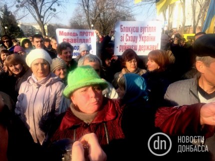 Часть митингующих скандировала: «Краматорск против блокады», «Ганьба». Сторонники блокады в свою очередь призывали областную власть поддержать блокаду.