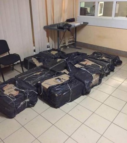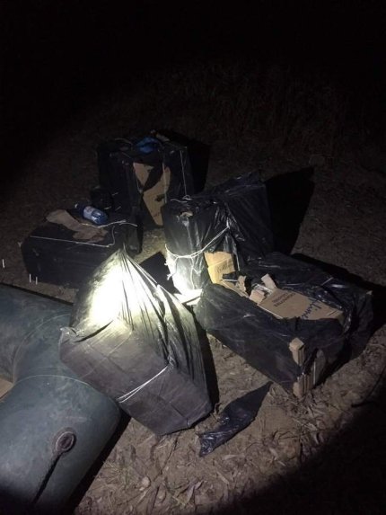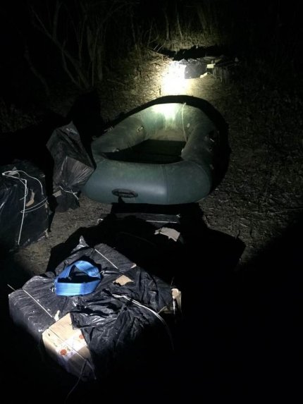 После задержания была изъята резиновая лодка и более 10 тыс пачек сигарет разных марок. В сети появились фото с места задержания.