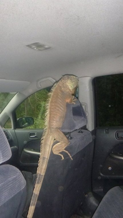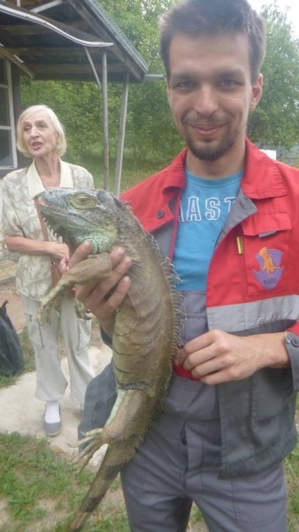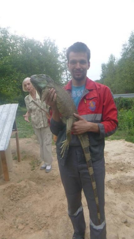 Когда волонтёры прибыли на место, то обнаружили на кусте истощенную и обезвоженную игуану примерно в метр длиной. Поскольку она не оказала никакого сопротивления, когда её забирали в ветеринарную клинику Киевского зоопарка, было решено, что животное лишь с месяц назад потерялось, и до этого жило с владельцем.