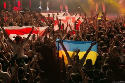 Во время выступления зрители развернули не только флаг Беларуси, но и Украины. Им в этом никто не препятствовал.