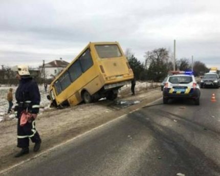 От удара автобус, в котором находились 15 пассажиров, вылетел с проезжей части.