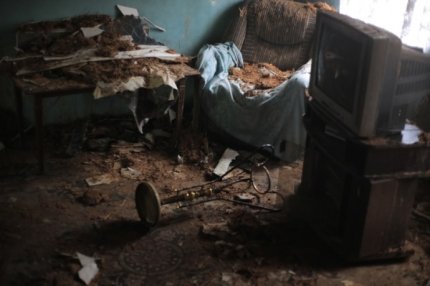 «Прилетел выстрел с РПГ (ручной противотанковый гранатомет — Ред.), пробил стену эту, вот ту, насквозь, и только в третьей стене он остановился», — добавил он.