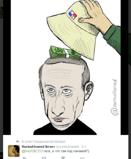 Так, Nurmukhamed Ibraev выложил свою карикатуру о панамских офшорах.