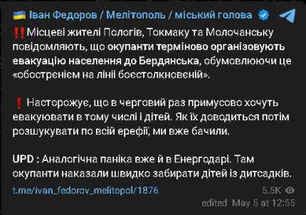 Источник: Центр национального сопротивления, мэр Мелитополя Иван Федоров