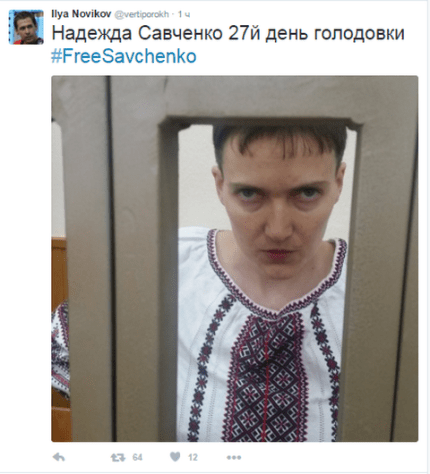 Из адвокатов на заседании сегодня присутствовал Илья Новиков. Несмотря на запрет, ему удалось сделать фотографию Надежды, сегодня, на 27-й день голодовки.