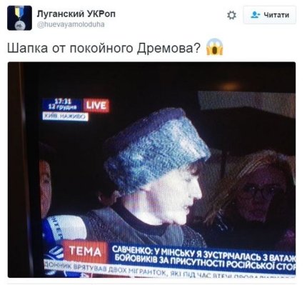 Так, в сети предположили, что надетая на Савченко шапка принадлежит убитому главарю одной из банд ЛНР Павлу Дремову, другие заявили, что шапка является подарком террористов.