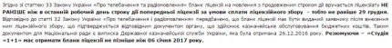 Также отмечается, что, согласно статье 33 закона Украины "О телевидении и радиовещании" бланк лицензии на вещание с продленным сроком действия вручается лицензиату не ранее, чем в последний рабочий день срока действия предыдущей лицензии при условии уплаты лицензионного сбора - то есть не раньше 29 декабря.