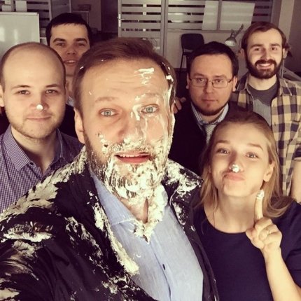 «Только что у входа в наш офисный центр какие-то клоуны зафигачили в меня два торта и разбежались в рассыпную. Надо было видеть, как я шёл до офиса и поднимался в лифте, и какие были лица у тех, кто меня встречал. Зато все в ФБК теперь хотят делать со мной селфи», - с юмором отметил оппозиционер.