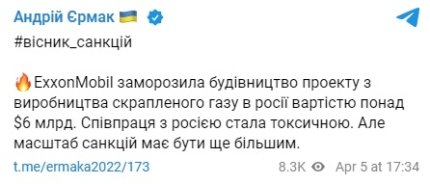 Нельзя не упомянуть о том, что ExxonMobil еще 1 марта 2022 года официально заявила, что выходит из проекта "Сахалин-1", которым она управляет от имени международного консорциума японских, индийских и российских компаний.