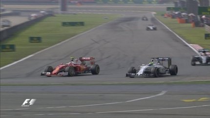 Как сообщает ONLINE.UA, начало гонки было неудачным для Ferrari. Феттель и Райкконен пропустили Квята, а пытаясь угнаться за россиянином. финн зацепил напарника.
