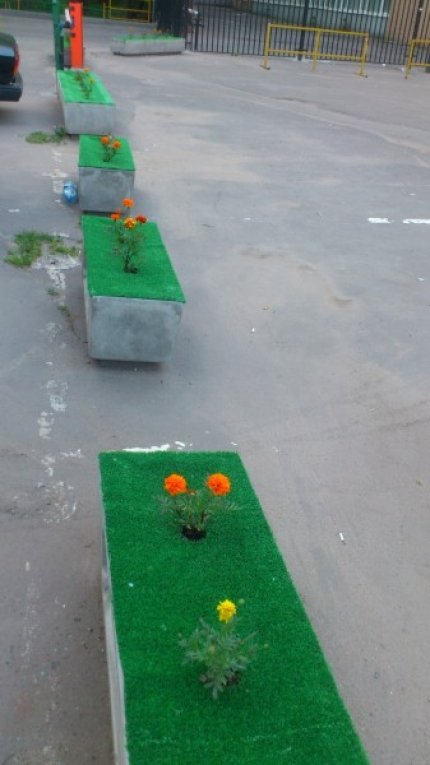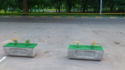 В социальных сетях высмеяли попытку московских властей озеленить город, выставляя на улицах «гробики» с зеленым ковролином и торчащими из него цветами.