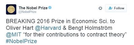 Лауреатами Нобелевской премии по экономике в 2016 году стали исследователи Оливер Харт и Бенгт Хольмстрем.