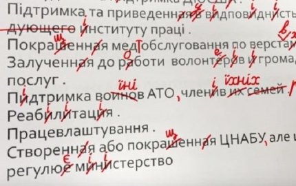 На каждой странице презентации конкурсного задания народного депутата от "Блока Петра Порошенко" имеется масса опечаток, а также малопонятных оборотов. Например, "диячу освиту" вместо "дитячу освіту" или "навидь ликів" вместо "навіть ліків".