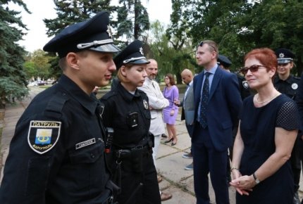 "Для меня честь присоединиться к пешему патрулированию с патрульной полицией Мариуполя. Украинские герои!", — сказала Йованович.