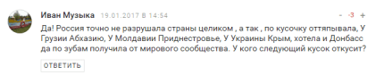 "Россия не разрушала страны целиком и не собирается этим заниматься, наоборот, активно участвует в борьбе с терроризмом, с тем, чтобы сохранить страны, уберечь многие регионы от возможных необратимых последствий", - отметил представитель Кремля.